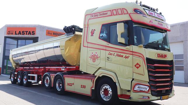 En flot ny Kel-Berg 4 akslet asfalt tiptrailer til Højbo Freelance Entreprenør